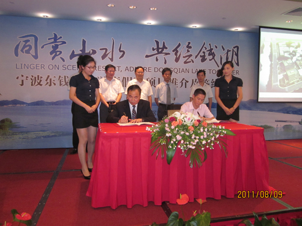 簽約的項目包括民建企業總部基地、和邦雅士莊園、東錢湖商會大廈、龍泰健康管理中心、錢湖水上樂園等,項目投資總額27.2億元。賽爾集團徐平炬總裁作為民建企業總部基地項目代表與東錢湖管委會主任史濟權共同簽字。晚上,管委會舉行了盛大的10周年慶晚宴,市領導、市屬相關職能委局領導、鄞州區領導、東錢湖管委會各部門以及在東錢湖投資興業的寧波著名企業家李如成、鄭堅江、王利平、樂志明、徐劍光、丁國等近300人參加了慶祝晚宴。