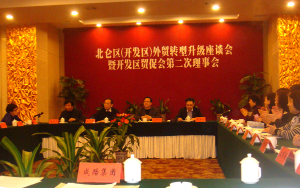 2011年12月29日下午,北侖區(開發區)在小港戚家山賓館召開了外貿轉型升級大會暨開發區貿促會第二次理事會。會議由北侖區(開發區)經發局孫海山副局長主持。北侖區管委會、經發局、發改局、財政局、區海關、區國檢等相關部門,以及包括聯合集團、億泰控股、海天進出口、貝發集團、優勝國貿、凱越國貿等在內的開發區前30強的外貿企業參加了會議。