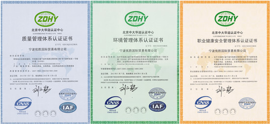 優(yōu)勝國貿(mào)順利通過三大體系認證