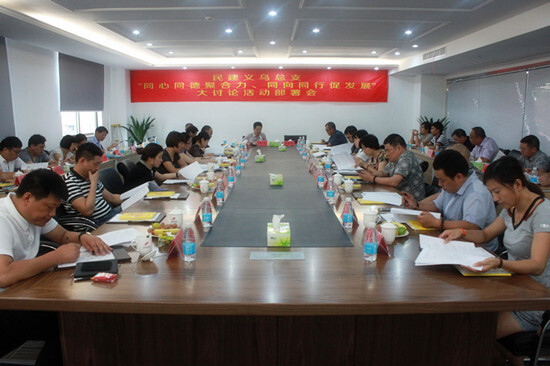 賽爾網訊 9月5日下午,民建義烏總支“同心同德聚合力、同向同行促發展”大討論活動工作部署會在我集團義烏運營中心會議室舉行,民建義烏總支三十多名會員參加。我集團義烏優訊進出口公司錢天鋒總經理作為民建會員,同時作為本次會議的接待東道主,全程參加會議。