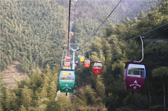清晨,大巴車帶領(lǐng)著我們開往集滑雪、溜索、滑道為一體的大型主題游樂園。雖說是山路,但是這里的風(fēng)景與眾不同。滿山遍野的竹林,還有村民們種的紅楓林,一紅一綠相映詼諧;偶爾山澗中還有小瀑布瀉下來,“嘩嘩”的聲音在安靜的早晨聽得格外清晰,空氣中彌漫著清新的感覺,真恨不得打包帶給那些仍被霧霾所包圍的朋友們。