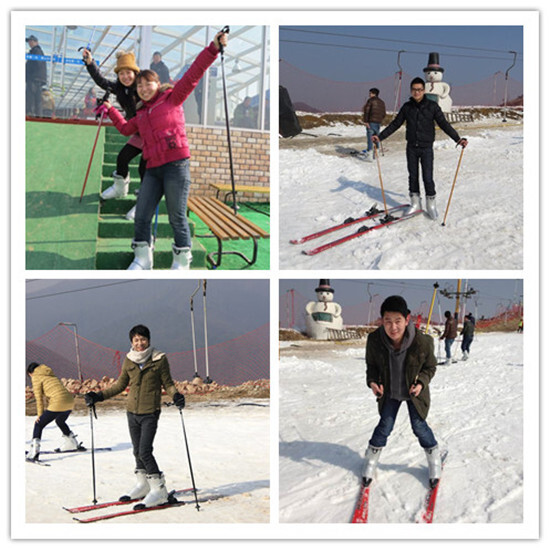 到達山頂?shù)拇髲d,伙伴們迫不及待地去領(lǐng)滑雪用具,由教練帶領(lǐng)著進入雪場。每個人都在認(rèn)真地跟教練學(xué)做:穿雪鞋—站立—剎車—控制下滑的步驟。雪場上不時有人摔的四仰八叉,但大家都很快爬起來繼續(xù)玩耍。