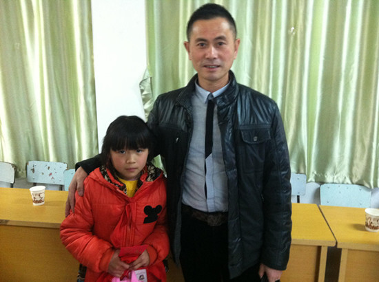黨支部書記殷朝洪與羅伊冉小朋友合影留念