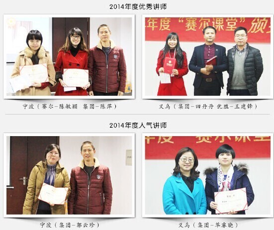 賽爾網訊 12月29日、30日,我集團在寧波、義烏兩地分別舉行“賽爾課堂”2014年度優秀講師暨優秀學員頒獎典禮,集團領導徐平炬、朱玲和王建分別擔任頒獎嘉賓,80余名內訓講師和優秀學員代表參加了頒獎典禮。