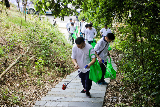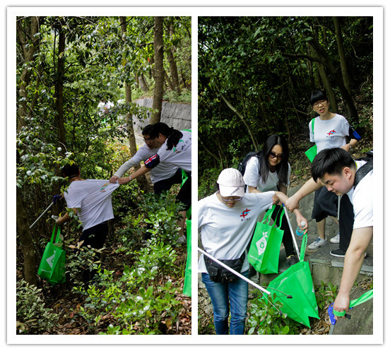 中坡山森林公園位于寧波西部的四明山上,是一個免費對外開放的森林公園,好山好水好空氣,深受寧波老百姓喜愛,周末園內人來人往,非常熱鬧。但比較遺憾的是,公園內步道兩邊飲料瓶、食品包裝袋等垃圾較多,與自然美景很不協調。4月11日,我集團和寧波市外經貿局工會聯合,首次走進中坡山森林公園,開展撿垃圾活動,倡導環境清潔理念,受到游人和當地龍觀鄉政府的肯定。時隔半個月后,我集團聯合寧波中信保公司團委,雙方組織了30多位同事,再次走進中坡山森林公園。