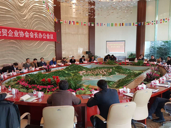 賽爾網訊 12月11日上午,正值歲末年初,寧波市外經貿企業協會在舟山朱家尖召開會長辦公會議,交流今年外貿發展情況,分析當前國內外政治經濟形勢及對外貿的影響,研究明年全市外貿重點工作。協會會長俞丹樺、常務副會長剛勇、北侖海關關長姜海清、寧波市商務委處長魏仁燦、費建明等領導和全市近20家外貿大企業負責人參加了會議。作為協會副會長單位之一,我集團副總裁方永強代表公司參加了會議。