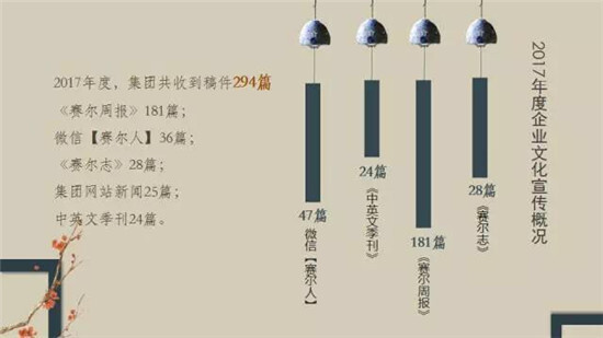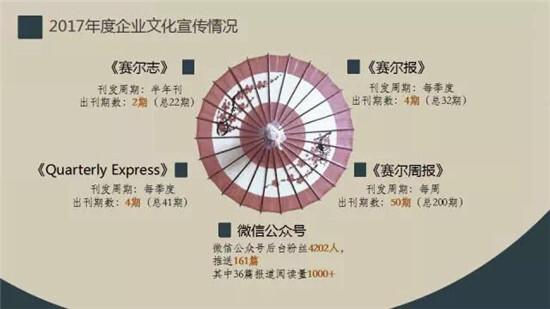 徐總對2017年集團企業文化宣傳工作成績給予充分肯定(鼓掌),他強調,要做好企業文化宣傳工作,核心基礎是做好企業文化建設工作,只講業務發展不講文化建設的企業是干燥、無趣、沒有活力的,企業文化也是生產力,企業規模越大越要重視企業文化建設。企業文化建設重在內涵提升,它能培養并反映出一個優秀企業的良好氣質,要通過創新性的、體現良好趣味的企業文化平臺載體和活動策劃,深度挖掘、提煉有價值的文化內容,輔之以生動的文化宣傳,吸引賽爾伙伴們參與其中,感受樂趣,增強歸屬感。希望賽爾伙伴們在專心做好業務的同時,也積極參與企業文化各項活動,讓賽爾成為有獨特文化魅力和活力的有機企業。
