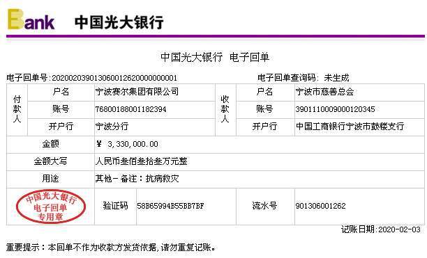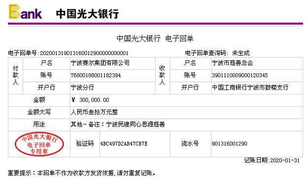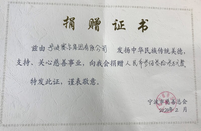此前,集團(tuán)董事長徐平炬先生也通過寧波民建市委會同心慈善基金捐贈30萬元用于抗擊新冠疫情。