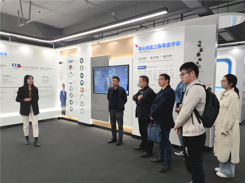 師生一行參觀了集團文化展廳,了解了賽爾發(fā)展史、業(yè)務布局、企業(yè)文化建設工作等,并參觀了3樓集團樣品間,對賽爾涉及的產(chǎn)品有了具象的認識。隨后一行人參觀了辦公區(qū)、會議區(qū)、休閑區(qū)等,老師與同學一致表示,賽爾業(yè)務增長喜人,組織建設和文化建設領先,工作環(huán)境優(yōu)良,是一家很有實力的好企業(yè),希望與賽爾加強合作,探索更多的合作方式,擴大合作成效。