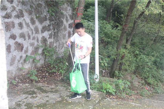 到達半山腰,大家小憩了一會,欣賞山上的風景。也許是迫切想看到更美的景色,優達的一名供應商朋友不作休息,一路登頂,讓公司很多年輕小伙子們自嘆不如。沒過多久,小伙伴們都拎著滿滿一袋垃圾抵達了山頂,當大家往山腳看時仿佛置身于云霧纏繞的仙境中,紛紛拍照留念。