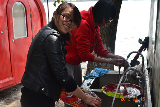 到達目的地后,姐妹們就立刻開始忙碌起來。看著這張笑臉,有沒有覺得洗菜也是一種享受?