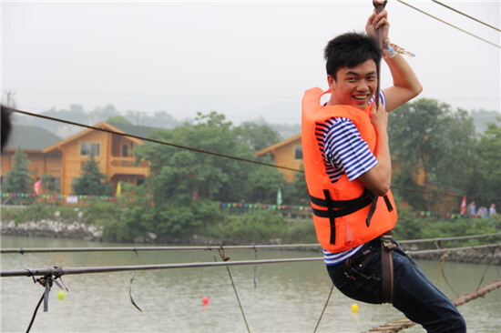 第一個環(huán)節(jié)結(jié)束,各支隊伍又奔向了比賽的活動地點,開始了緊張刺激的挑戰(zhàn):高空溜索,一戰(zhàn)到底和青春運動會。每一隊的隊員們都通力合作,積極努力地去完成項目。