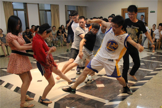 桑巴節激情的音樂此起彼伏,輕松自在的氛圍里,好玩的游戲不斷,比如泡泡糖游戲。參與者聽主持人指示,按主持人所喊人數抱團并且做出規定動作。當超哥和謝總互相“捏“著對方鼻子的時候,我們都笑翻了,主持人也樂了,不斷的強調是“粘鼻子”……Oh my god, 這么緊張時候,誰還分得清是“粘”還是“捏”啊?