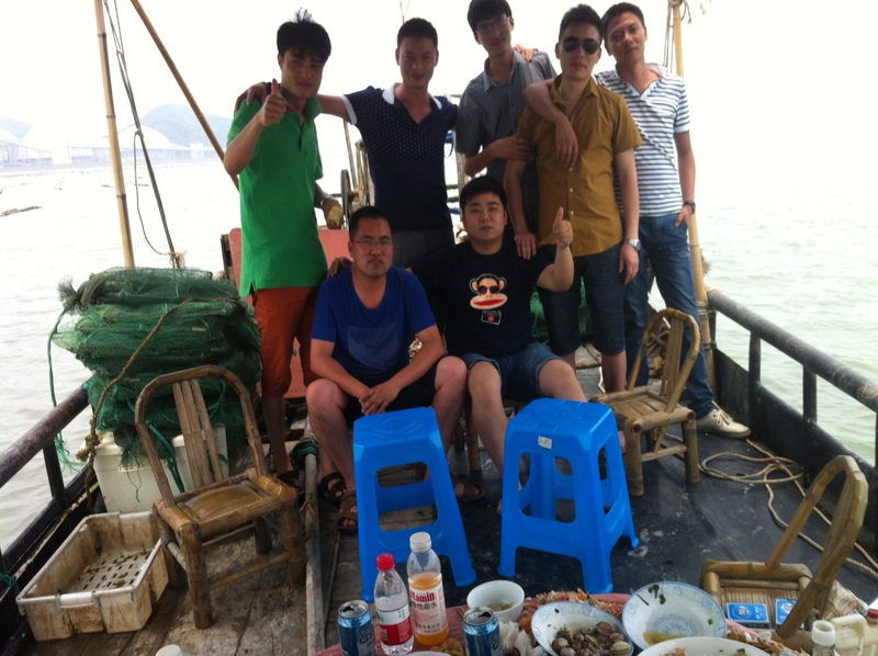 早上8:30,小伙伴們到達峽山碼頭,上捕魚船,開始出海捕魚。晌午時分,一網網活蹦亂跳的美味抖落下漁船上,螃蟹,八抓魚,海鰻…….吃著自己親手捕的海鮮,吹著涼爽的海風,一船人激動無比。沐浴著溫暖的陽光,遐逸之余,大家開始聊起各種出差在外的趣事,各種工作上的突發情況,以及家里甜蜜的幸福。