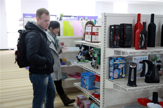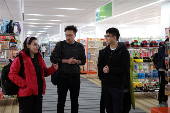 留學(xué)生一行先來(lái)到我集團(tuán)產(chǎn)品展示中心,當(dāng)看到和大型超市一模一樣的產(chǎn)品展示中心時(shí),他們感到非常驚訝,當(dāng)了解到中心展示著近10萬(wàn)種出貨產(chǎn)品時(shí),更是贊嘆不已。他們不時(shí)拿起感興趣的產(chǎn)品細(xì)看,并向工作人員詢問(wèn)產(chǎn)品細(xì)節(jié),有些還向工作人員索要樣本冊(cè)表示回去研究。