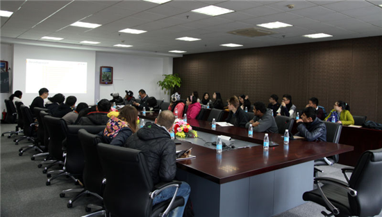 隨后,留學(xué)生一行參觀了我集團(tuán)辦公區(qū)域。在集團(tuán)大會(huì)議室,我們簡(jiǎn)要介紹了集團(tuán)發(fā)展情況。聽(tīng)完介紹,留學(xué)生們對(duì)我們集團(tuán)有了更全面的了解,認(rèn)為集團(tuán)是一家很有實(shí)力的國(guó)際貿(mào)易企業(yè),有留學(xué)生當(dāng)場(chǎng)希望今后有機(jī)會(huì)能來(lái)集團(tuán)實(shí)習(xí)。