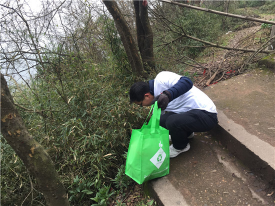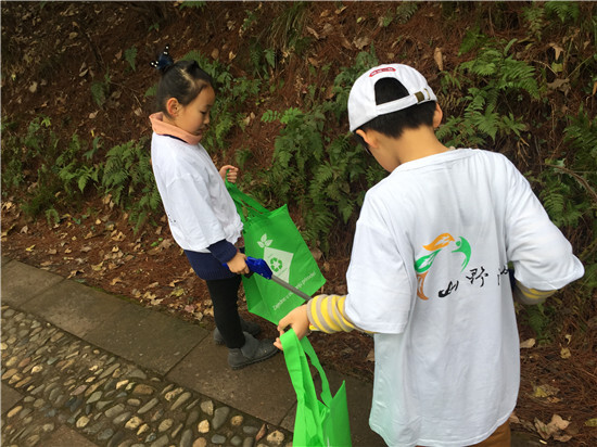 一路上,我們把路旁、草地上、樹叢中的垃圾撿拾起來,為保護德勝巖的環(huán)境清潔盡一份力