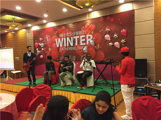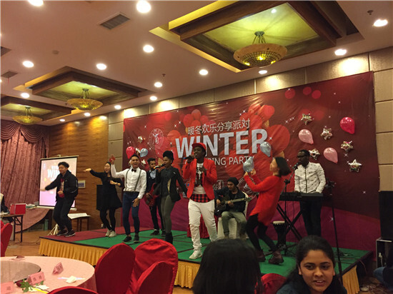 暖冬歡樂分享派對活動分三個部分:15名來自世界各地的留學生自導自演的表演節目,2個現場互動游戲和3次抽獎環節。隨著活動的進行,現場的氣氛越來越熱烈,掌聲和尖叫不斷。印度尼西亞和非洲當地的特色舞蹈讓我們領略了異域的文化風情,而魔法秀、自由舞蹈、高音歌唱家、樂隊秀等精彩節目,也讓我們深深被這些熱情洋溢多才多藝的寧大留學生們所折服。