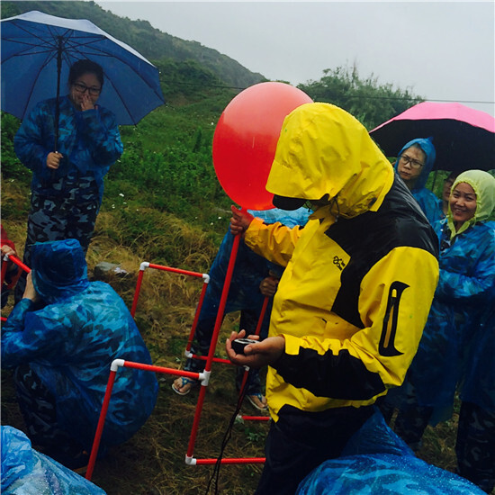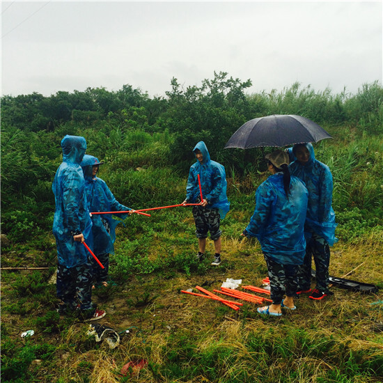 第二天一大早,在教練的帶領(lǐng)下,學(xué)員們在大風(fēng)大雨中玩起了同心協(xié)力吹氣球的游戲。贏取眾多食材后,大伙紛紛展示廚藝,制作出了一道道“美食”:水煮淡菜、水煮蟶子、大白菜炒肉……午飯過后,大家開始打道回府。