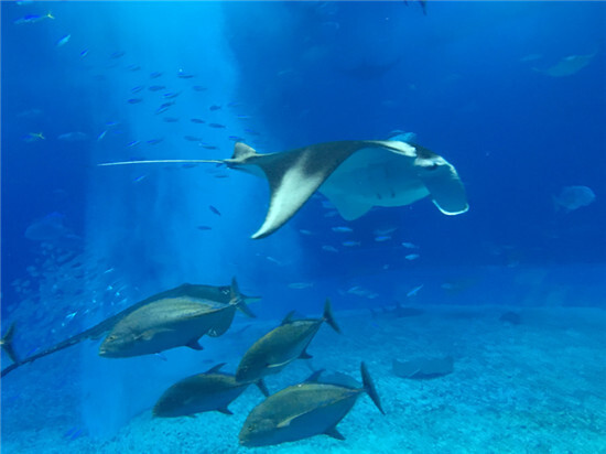 接下來幾天,我們穿過通往天堂的古宇利大橋,沿途的“七色海”閃爍著藍寶石光芒,輕輕環抱著海島,細軟綿長的白沙灘和色彩漸變的海水,讓人遐想萬千。還有水族館看鯊魚、沙灘邊上看海豚秀、古色古香的首里城公園等等,最終優景家人的笑容,定格在一片郁郁蔥蔥的樹群中,留下了珍貴的合影。