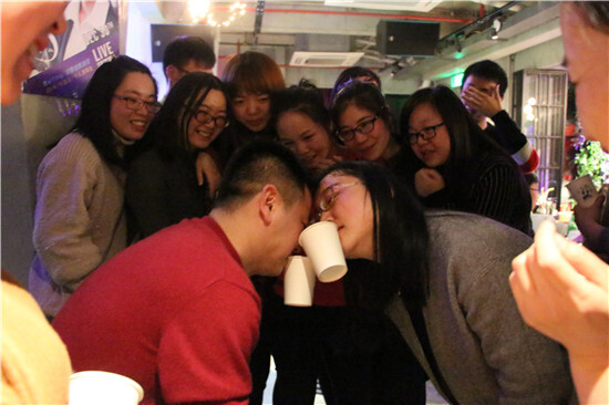 接下來是大冒險(xiǎn)游戲,第一輪是南美非的徐總背著財(cái)務(wù)美女去陳總面前敬酒,來來回回背了不知道多少次,還好財(cái)務(wù)美女的身材好,不然很擔(dān)心徐總的體力,哈哈哈。第二輪南美非的楊奇扭屁股寫字,扭了3次后單證奚姐終于猜出來了,棒棒噠。第三個(gè)游戲是水杯接龍,領(lǐng)導(dǎo)一隊(duì),員工一隊(duì),都是4男4女錯(cuò)開站,嘴咬著杯子,倒水給下一位,最后水剩的最多的獲勝。為了增加游戲樂趣,領(lǐng)導(dǎo)說,要是他們輸了,除了游戲獎(jiǎng)品,每個(gè)領(lǐng)導(dǎo)在群里發(fā)300元紅包給全公司的人。在紅包的刺激下,員工隊(duì)拼盡全力,最終完勝領(lǐng)導(dǎo)隊(duì),群里下起了紅包雨,到處都是搶到紅包的歡呼聲。期間還穿插著各種抽獎(jiǎng)環(huán)節(jié),參加6次小年夜都沒拿到過獎(jiǎng)品的楊奇終于人品爆發(fā),抽到了一等獎(jiǎng),激動(dòng)地把陳總抱了起來。