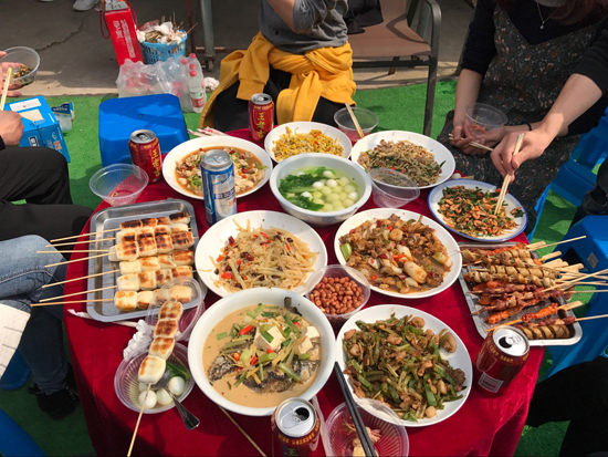 新鮮的食材,齊全的燒烤配料,充沛的零食酒水,無不體現采購男神們的貼心、周到。看他們認真洗菜的樣子,精湛的刀工,生火烹飪時的協調配合,讓圍觀的女人們更是贊不絕口。快看這邊烤肉串的帥哥,再看那邊大廚范兒十足的美男,就連專業生火20年的師傅都面容俊美。
