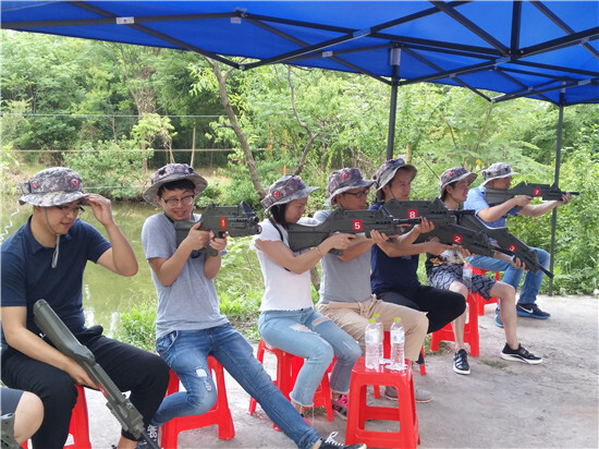 在CS對抗賽中,全副武裝的伙伴們拿著武器,由教練進行戰前指導,如何正確握槍和如何瞄準射擊。萬事俱備后,大家分成兩組進行對抗賽,戰場硝煙四起,兩組成員分別靠著磚墻搭起的防御墻進行躲避和射擊,射中敵人后的歡呼聲此起彼伏。一場真人CS激發出了大家的熱血和團隊凝聚力,連平時看起來文靜的萌妹子都大呼過癮。