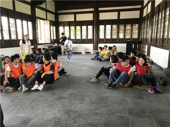 中午稍作休息之后,我們開始了今天的重頭戲,團建小游戲。首先是雙人運氣球,即是比拼速度也是考驗策略。有的團隊為了求快,氣球吹得太小,反而花了很長時間爆破氣球。另一個游戲是氣球不落地,大家紛紛展示出各種姿勢,在吹落敵方氣球的時候又及時挽救自己的氣球,虞浩君的一個鯉魚打挺贏得了陣陣掌聲。最后一個環節,也是最考驗團隊協作的一個游戲-齊心協力站起來。8位隊員坐在地上,要靠隊員之間的借力,不用手撐地而站起來。在10多分鐘的練習之后,幾組團隊漸漸掌握了訣竅,不斷突破,從8秒到3秒,挑戰的時間越來越短,成功率越來越高。相信這也是大家在工作中不斷創新,不斷進步的縮影。
