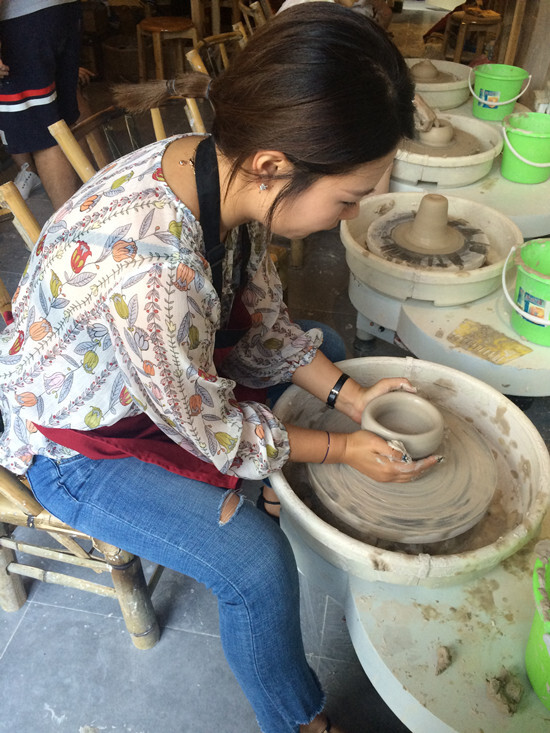 在很短的時間內,老師以最簡單而專業的方式教我們在轉動的拉坯機上制作個性實用器皿,如杯子,碗,花瓶,盤子等。接著,我們都放開手腳開始“創作”我們自己的陶藝作品。