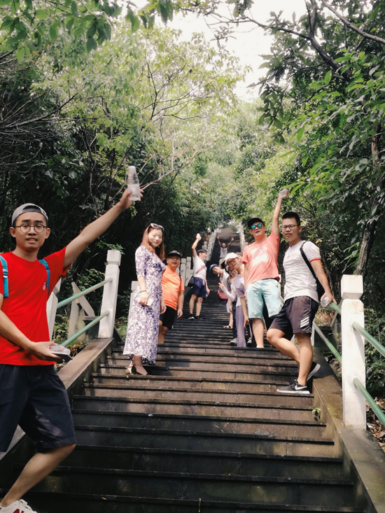 黃賢海上長城森林公園,東西北三面環山,南面臨海,景色十分壯觀。一行人你拉我,我拉你的,登上了第一個山頂。天空也很作美,下了一場大雨,送來了清涼。等雨停了,我們又繼續前往了另外一個山頭,登上了海上長城之路。大約經過一個小時,我們登頂,眺望遠方的風景,覺得心曠神怡。晚餐時,我們迎來了一個小小的驚喜,部門有2位同事生日,殷總早早的準備好了生日蛋糕,著實給他們一個意外的驚喜。