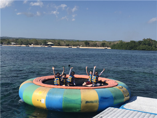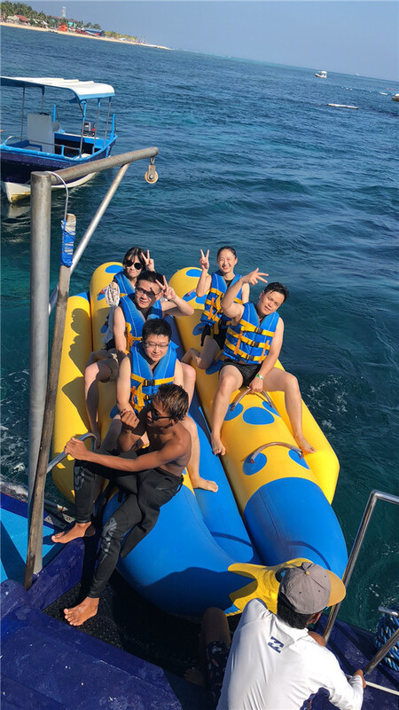 第二天的藍夢島出海之行,一個小時的船程讓大家又愛又傷。當小船在大海中飄搖,此刻,我們只想喊一聲:胃,你好嗎!還好藍夢島沒有讓人失望,藍寶石般的海水,柔軟細膩的沙灘,還有郁郁蔥蔥的椰林,再加上各種海上活動,讓大家沉醉其中,早就忘了曬黑是怎么一回事兒!