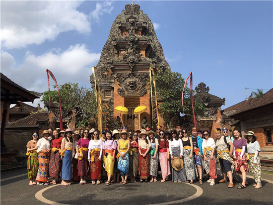 6月15日,全團一行40余人,從蕭山飛行六小時,于凌晨抵達巴厘島機場,走出機場大門就收到當?shù)厝怂偷碾u蛋花項圈,芬芳撲鼻,化解了我們一路的疲憊。