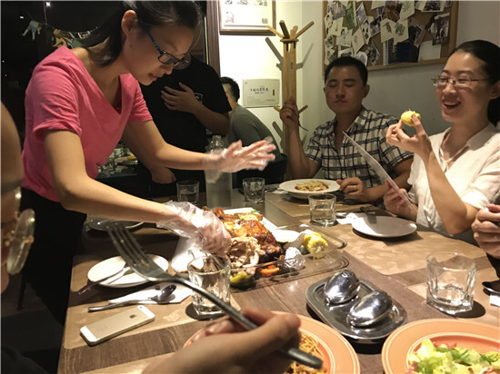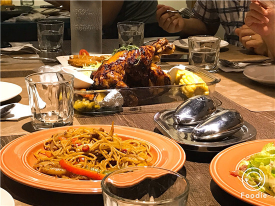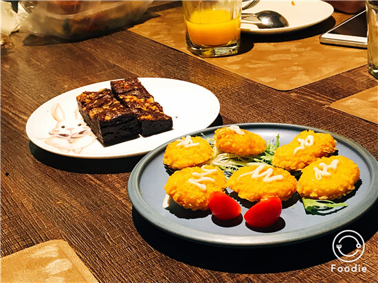 這次聚餐我們選在了義烏田畈西式簡(jiǎn)餐,感受了網(wǎng)紅美食的魅力。提前預(yù)定的田畈秘汁烤全雞果然沒(méi)讓我們一行人失望,肉質(zhì)鮮嫩,手撕過(guò)癮,多吃不膩,但貌似廚師大神今天用力過(guò)猛抖了太多鹽,不過(guò)口感還是極佳的。黑椒牛柳意面、芝士蓋飯、香酥鱈魚、焗大蝦、凱撒沙拉、鮮嫩牛排還有美味的披薩都很驚艷。好在這次留了胃給飯后甜點(diǎn)堅(jiān)果布朗尼,濃郁的巧克力加上脆口的堅(jiān)果,層次分明口感特別棒,飯后嘗一塊真是享受。