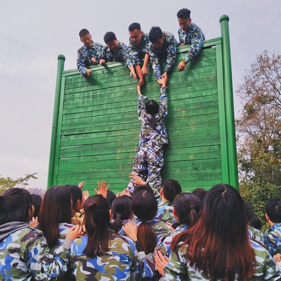 第二天,同樣是幾個(gè)小游戲,也帶給了我們很多啟示。拓展的最后一個(gè)項(xiàng)目是翻逃生墻,這也是兩天拓展中讓人最感動(dòng)的項(xiàng)目。4米多的墻,靠個(gè)人力量是不可能翻上去的,唯一的辦法就是搭人梯。男生們主動(dòng)上前充當(dāng)人體肉墊,教官指導(dǎo)調(diào)整,后面越來越默契,僅用了19分鐘,所有人得到解救。看到下面充當(dāng)肉墊的勇士們面部猙獰的表情,女生們也情不自禁地鼓掌。整個(gè)項(xiàng)目在“賽爾,加油”的吶喊中結(jié)束了。這個(gè)項(xiàng)目告訴我們,人還要學(xué)會(huì)感恩!感恩給予幫助和提攜我們的人,每個(gè)人的成功除了自身的勤奮和努力外,最大得益于來自周圍的親人、朋友以及同事的幫助。