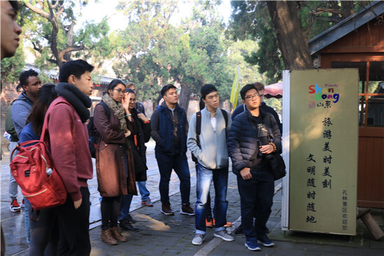 DAY1 經(jīng)過四個多小時的高鐵,留學(xué)生一行終于抵達了曲阜,旅途的疲憊并沒有消減同學(xué)們的熱情。在游覽過程中,大家都驚嘆于中華悠久歷史、上千年的文明、上百年的建筑,還有各種上古神獸,我的耳邊都是“wow,this is amazing.it’s unbelievable”這樣的贊嘆,一股自豪感油然而生。