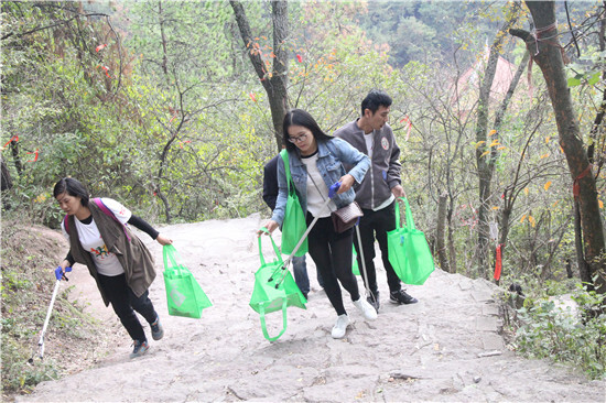 談笑之間,山中的垃圾變得一干二凈,我們的目的也達到了,又得到很多路人的贊賞,心中更是美滋滋。結(jié)束之后回想此次路程,不由得脫口而出:愛心不能停,公益不能停。