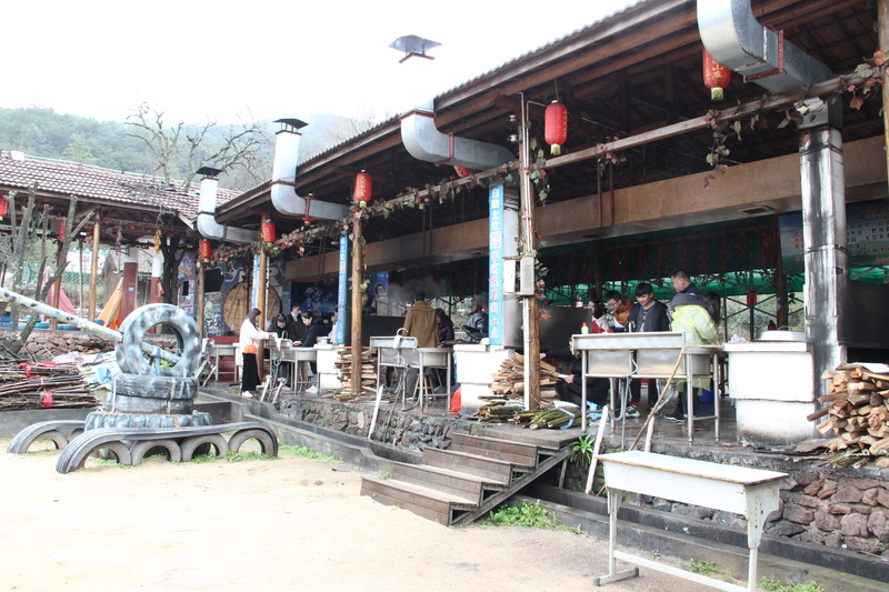 流完汗自然是少不了美食的犒勞,為了體驗以前的土灶樂趣,我們把午餐定在了山莊。原來拔河的四組人員各自采購食材,大家分工明確,洗菜、切菜、燒火、包餃子、做菜。歷經4個小時的忙碌,大家都玩得十分開心,吃得非常盡興。