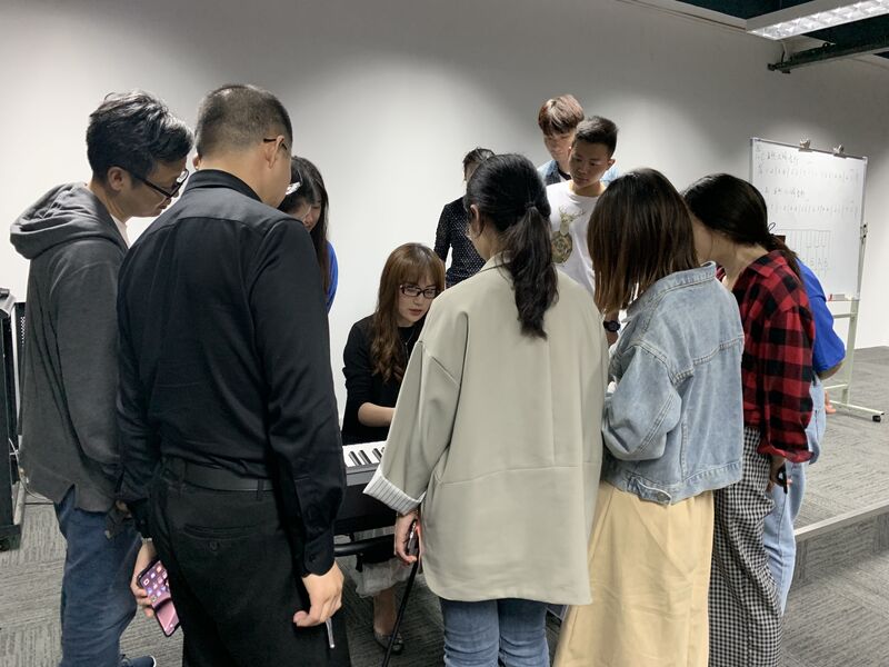 學員們認真且專注,一時間教室里響起一陣陣 “si”、“mi ma mi”的聲音。隨后,通過電鋼琴的配合,學員們在老師的講解和示范下進行了單個音的發聲練習,原來簡單的do、 re、 mi 、fa、 sol、 la、 si 、do都有著它們各自的性格,老師生動活潑的講解和穿插的小互動讓原本枯燥的基礎練習充滿了歡聲笑語。最后,配合著老師的琴聲,課程以一首悠揚的《送別》唱曲圓滿結束。