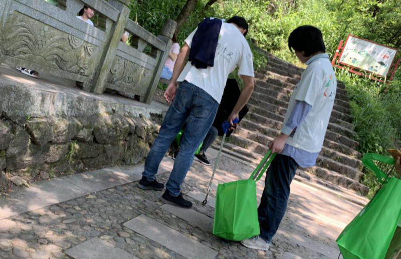 到達目的地后,大家拿到工具便開始了步行。得益于前兩次的山野清風,我們這次一路走來并沒有發現很多垃圾,只有路邊和歇腳的涼亭能發現少許垃圾。