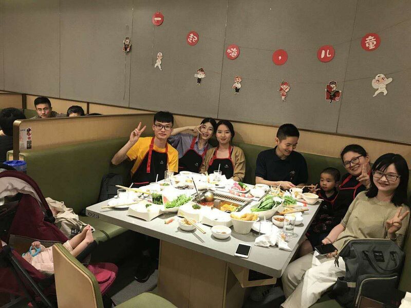 6月1日中午,優騰AA跟AF的大寶貝們帶著小寶貝們一起早早趕赴金華吃海底撈。經過一頓飯的功夫,我們兩組的小伙伴已經快速地熟悉起來,再加上兩位小寶貝,現場歡聲笑語不斷,氣氛非常融洽。