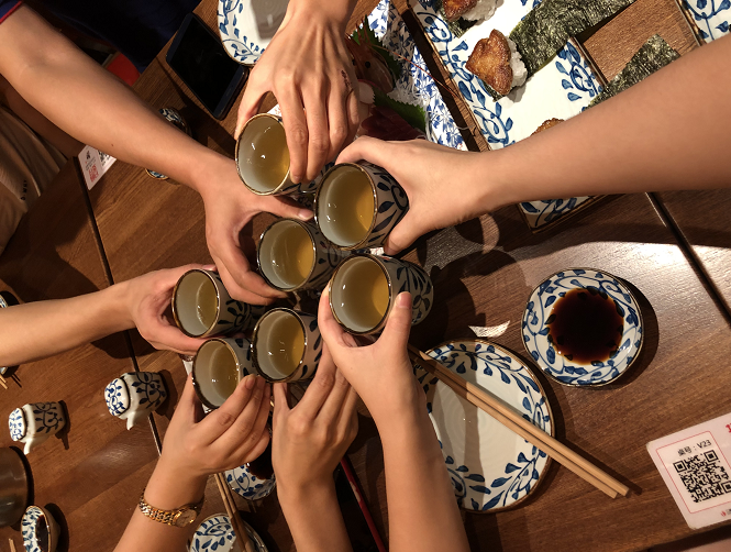 義烏這邊的小伙伴們在8月23日下班后準備好就一起出發(fā)了,見到了之后也是一陣熱聊。各種誘人的日料紛紛上桌,一群吃貨拍好美美的照片就迫不及待地開動了。
