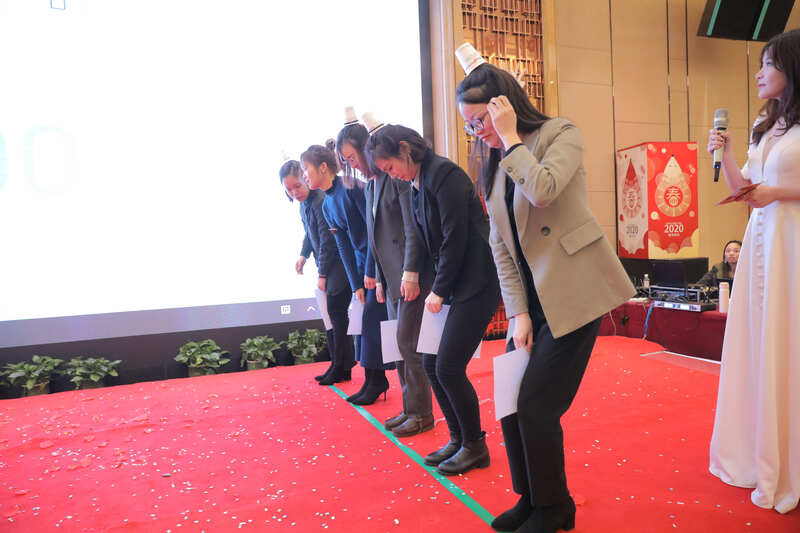 舞臺一隅堆積如山的獎品更是讓人抽獎抽到手軟,最后一輪的砸金蛋環節也是驚喜連連,四位老總熱情上臺,砸的是金蛋,發的是紅包。會上330多位小伙伴隨著老總們不間斷的紅包浪潮更是體現拼手速攢人品的時刻。精彩的節目和歡樂的領導層互動游戲將晚宴推向一波又一波高潮,大優訊年會盛典在一片歡聲笑語中圓滿落幕。