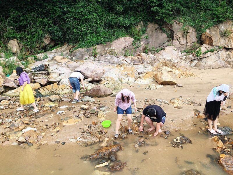 到達(dá)海邊民宿后,大家迫不及待地放下行李,分頭去海邊玩耍。有些人開(kāi)始放桿釣魚(yú),有些人便在巖礁抓螃蟹挖貝殼,大家放肆地挽起褲腿,放下平日的矜持,找到一塊好看的海螺便立刻呼朋引伴,邀請(qǐng)他們前來(lái)觀看。
