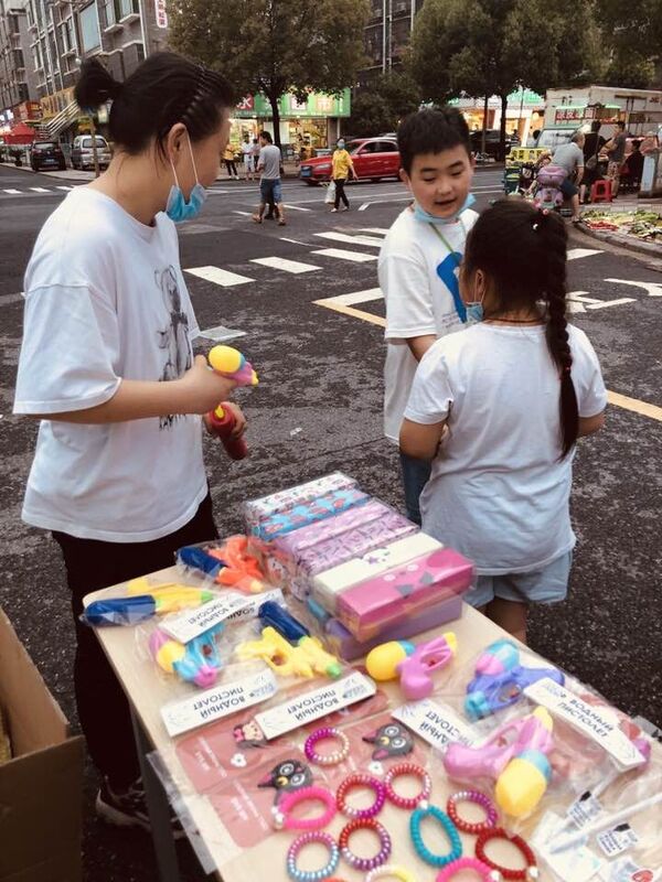 準(zhǔn)備就緒后,大家開始積極吆喝起來。為了賣出產(chǎn)品,我們甚至到處誘惑小朋友,一番努力后總算賣出了不少產(chǎn)品。但初次出道的我們總是干不過隔壁經(jīng)驗豐富的老大爺,挨不住肚子的造反,8點我們就收了攤,踏上了地鍋之旅。