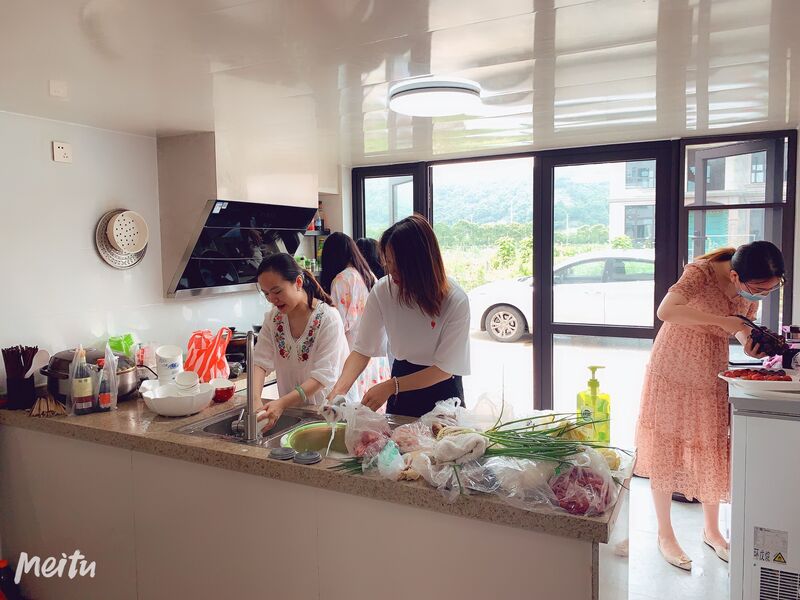 一大早四位工作人員便先行前往當(dāng)?shù)夭耸袌鲞x購火鍋食材,剩余人員也隨后陸續(xù)出發(fā)前往目的地。全員到齊后,大家便開始進(jìn)行準(zhǔn)備工作,刷盤、洗菜、切菜,大家各司其職,當(dāng)然也不乏平常在家不干家務(wù)活的“勞動(dòng)人民”制造了點(diǎn)小插曲,氣氛十分歡快。