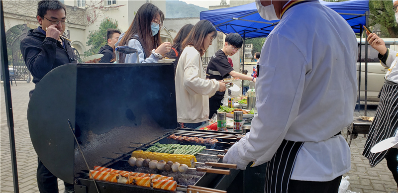 沒過多久,遠(yuǎn)處便傳來了陣陣香氣,各種豐盛的燒烤美食已悄然奉上。桌面上堆滿了各式各樣的酒水飲料,供大家隨意品嘗。