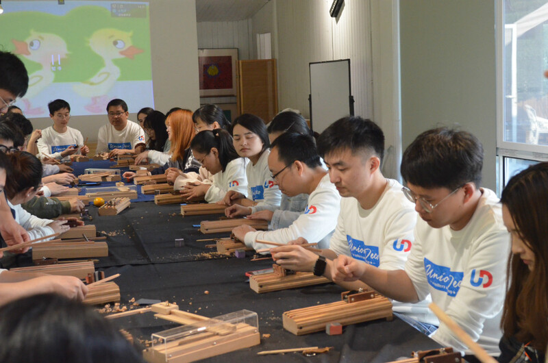 餐后是手工筷子制作環(huán)節(jié)。遠離大城市的喧囂,靜下心來,用大自然饋贈的最有溫度的材料,經過刨削、打磨、刻字、上蠟這幾道工序,制作出那雙獨一無二的筷子,愿優(yōu)德的小伙都能“筷”樂常伴。