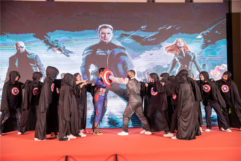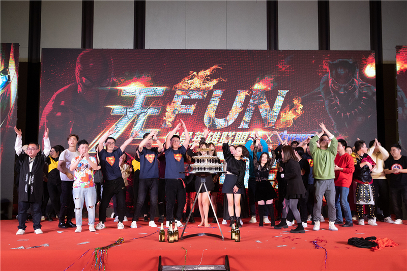 晚上,以"無Fun不起浪"為主題的春茗晚宴熱烈開場。大家紛紛換上了自己的服裝,伴著音樂依次入場,引起現(xiàn)場一波又一波的歡呼。漫威英雄齊聚晚宴現(xiàn)場,展示了別具一格的優(yōu)景人形象。晚宴開場,侯總的一曲《kill this love》讓我們驚叫連連,颯爽帥氣的舞姿迷倒了現(xiàn)場的迷弟迷妹們。緊接著,各個業(yè)務(wù)部都帶來了精彩紛呈的表演節(jié)目。現(xiàn)場的熱度連連攀升,尖叫不斷,掌聲不斷。同時,主辦方準(zhǔn)備的串場小游戲和抽獎活動,更為晚宴增添了樂趣和驚喜。眾多員工都抱得大獎,滿載而歸。最后侯總、邱總、韓總額外加碼,以舞技論英雄,將晚會推到了高潮,臺上的互相“battle”更是讓我們看到了大家隱藏的技能。