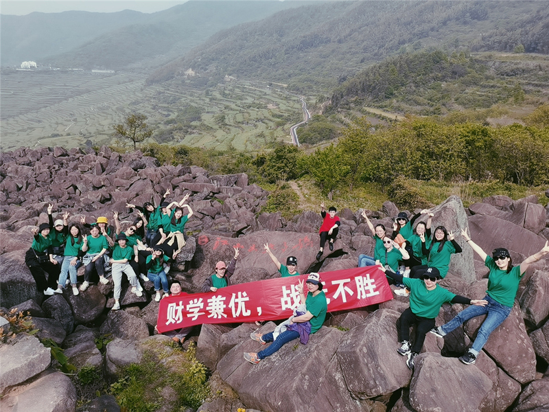 村頭后便是覆卮山景區了,放眼望去,滿是山野綠色。我們攜手踏過千年梯田,攀爬萬年石浪,敲擊冰山響石。在頂峰處,大家拉起橫幅大喊口號一起合影留念,在這田園美景世外桃源中,留下了珍貴的記憶。