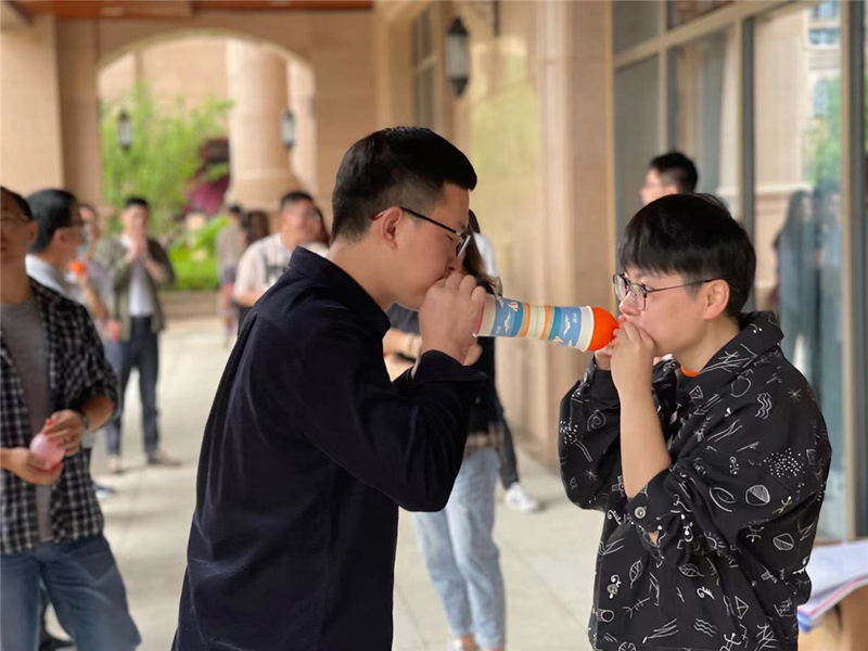第二天又下起了小雨,我們只得取消原定景點,在酒店中進行了團建游戲。考驗手腳協調、平衡能力的“手忙腳亂”,讓大家真正體驗到了手腳并用的感覺;需要相互配合,相互溝通的“紙張傳遞”,大家八仙過海各顯神通,有摩擦頭發試圖產生靜電的,有悄悄沾點水增加粘性的,而裁判都睜只眼閉只眼,畢竟大家開心才是最重要的。經過兩輪的角逐,兩隊打成平手,最終A隊在最后一局的“氣球接力”中獲得了游戲的勝利,同時也收獲了紅包。
